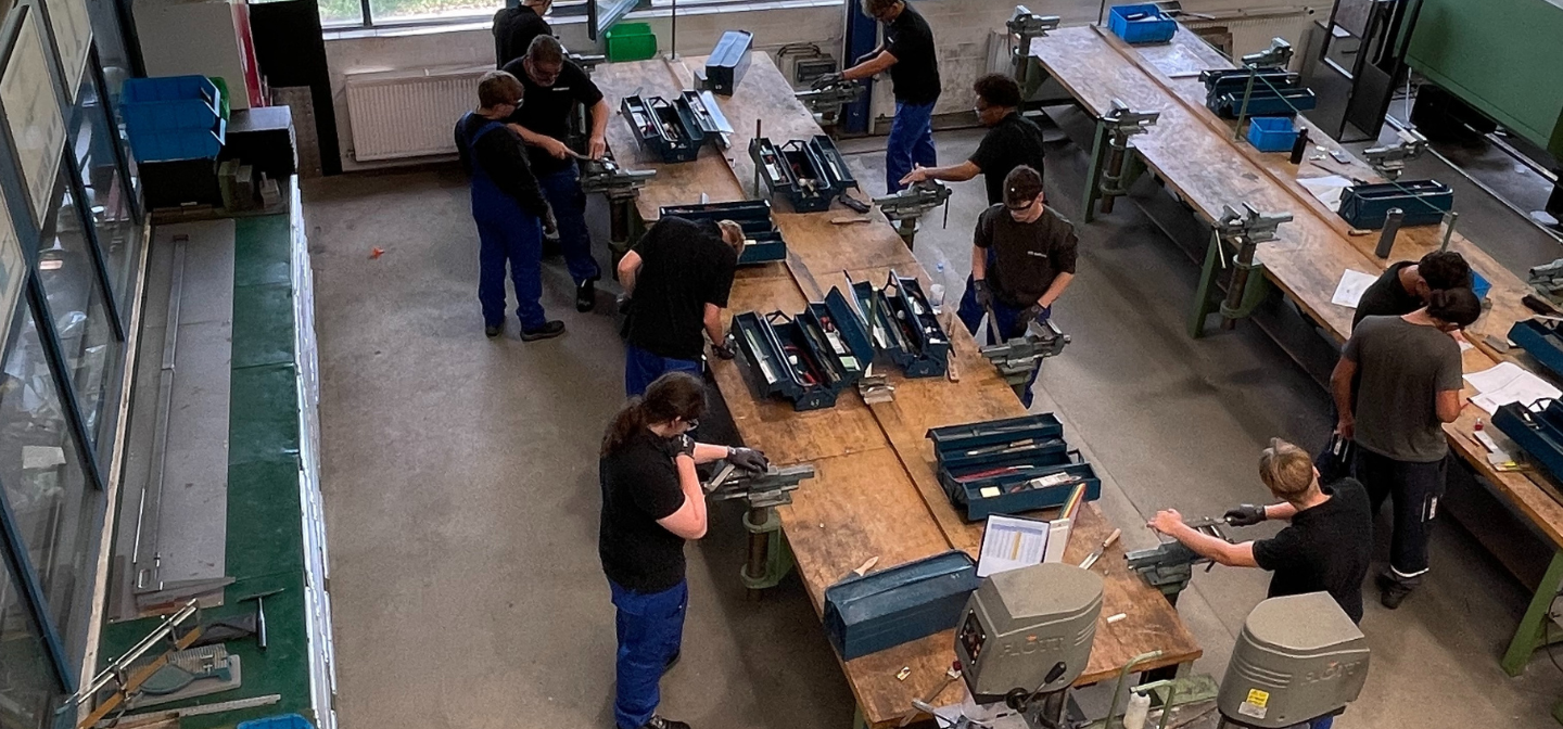 After the initial briefings and instructions, the focus was on getting to know each other: social worker Carsten Schreiber and training supervisor Stefan Wollherr accompanied the onboarding process and ensured a successful start with various team-building activities. On the third day, it was time to get to work – the trainees were able to demonstrate their manual skills in the basic metalworking course.